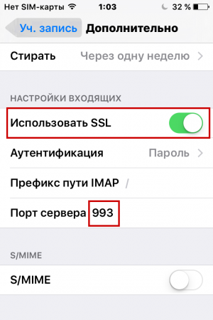 После того, как Вы сохранили настройки, еще раз зайдите в меню "Настройки почты". Внизу Вы увидите вкладку "Дополнительно". Кликните по ней, чтобы проверить, правильно ли система назначила дополнительные параметры, и при необходимости внести соответствующие корректировки: