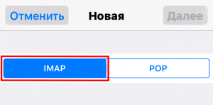 В следующем окне Вы увидите закладки POP и IMAP. Вам нужно будет выбрать предпочтительный для Вас вариант. В нашем примере выберем IMAP.