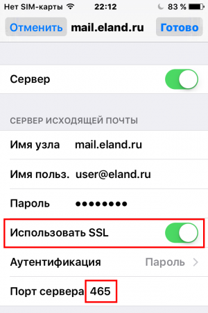 | Имя узла: (адрес сервера исходящей почты) | mail.eland.ru | mail.eland.ru |