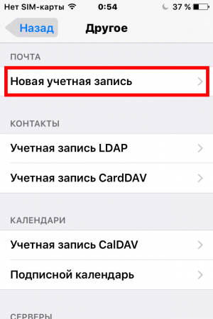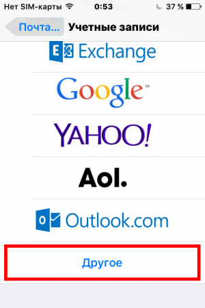 Кликните по пункту "Добавить учетную запись" и в появившемся списке выберите вариант "Другое"